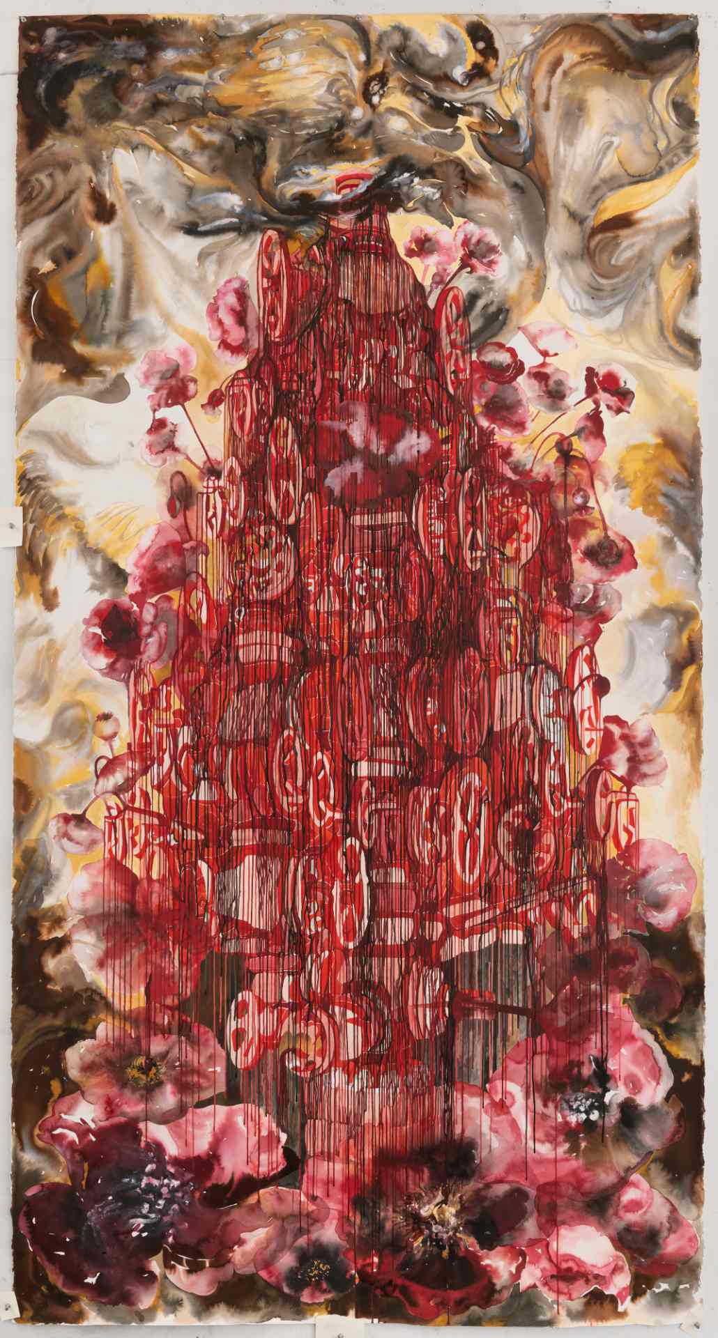 AA: As the scholar Sadia Abbas has suggested, the paintings bring to mind the contradictions of capitalism as an almost mythic presence: promising abundance, while being an engine of extraction, exploitation, and planetary violence. Like a terrible ineluctable seductive god.