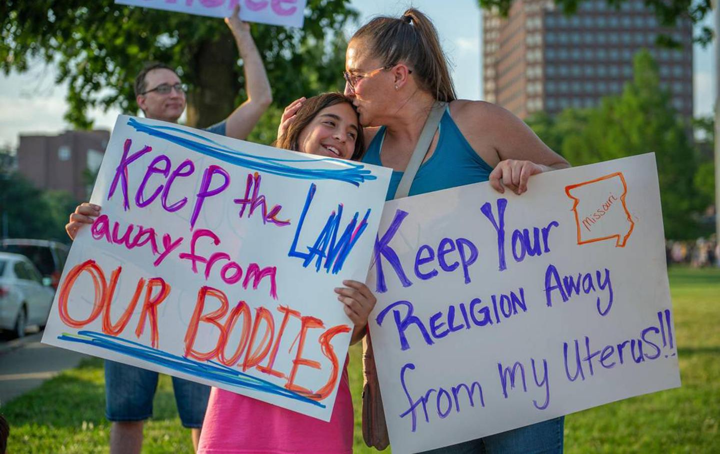 A daughter and mother at a Missouri protest opposing the Supreme Court’s ruling overturning federal protections for abortion rights in June 2022.