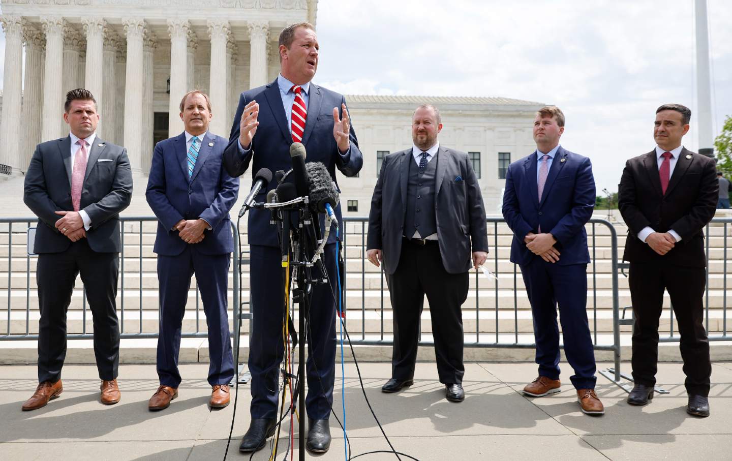 Republican AGs play the critical role. They are the people who, under their own authority, can bend the law to their will and weaponize it against vulnerable communities. There are currently 27 of them, and they include future Newsmax hosts like Kansas AG Kris Kobach, who finds his joy in suing to stop Joe Biden’s student debt relief program; Florida AG Ashley Moody, who spends her days fighting whatever “wokeness” conspiracy exists in her head at any given moment; and Texas AG Ken Paxton, who has effectively decided to make up his own immigration laws and enforce them at the point of a gun.