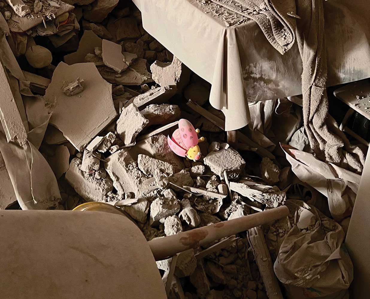 The medics tried to carry me away on a stretcher, to do first aid, but I refused to go until I knew they had found everyone. They promised me they would, but their faces told a different story. For hours after, I sat on the ground, unable to move, watching as they dug through the rubble, pulling out lifeless bodies, bloodied toys, torn pieces of furniture. Each item they found felt like another piece of me being stripped away.