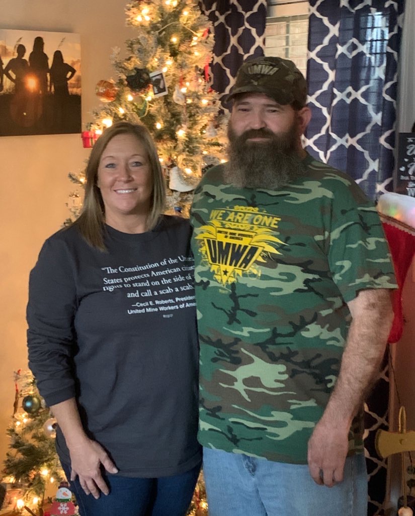 For Pilkerton, the union—and coal mining—has always been about family. When I met up with him during a recent reporting trip for More Perfect Union, I visited his wife’s parents’ house, a spacious haven decorated with family photos. A frothy white Christmas tree winked out from a corner, and the requisite college football game was unfolding on the flatscreen TV hung behind him. A burly white man with a bushy beard and kind eyes, Pilkerton was dressed in green and gold UMWA camo; his cheerful blonde wife, Amy, looked on as her mother knit beside her. He settled into the sofa, and told me about how he got here.