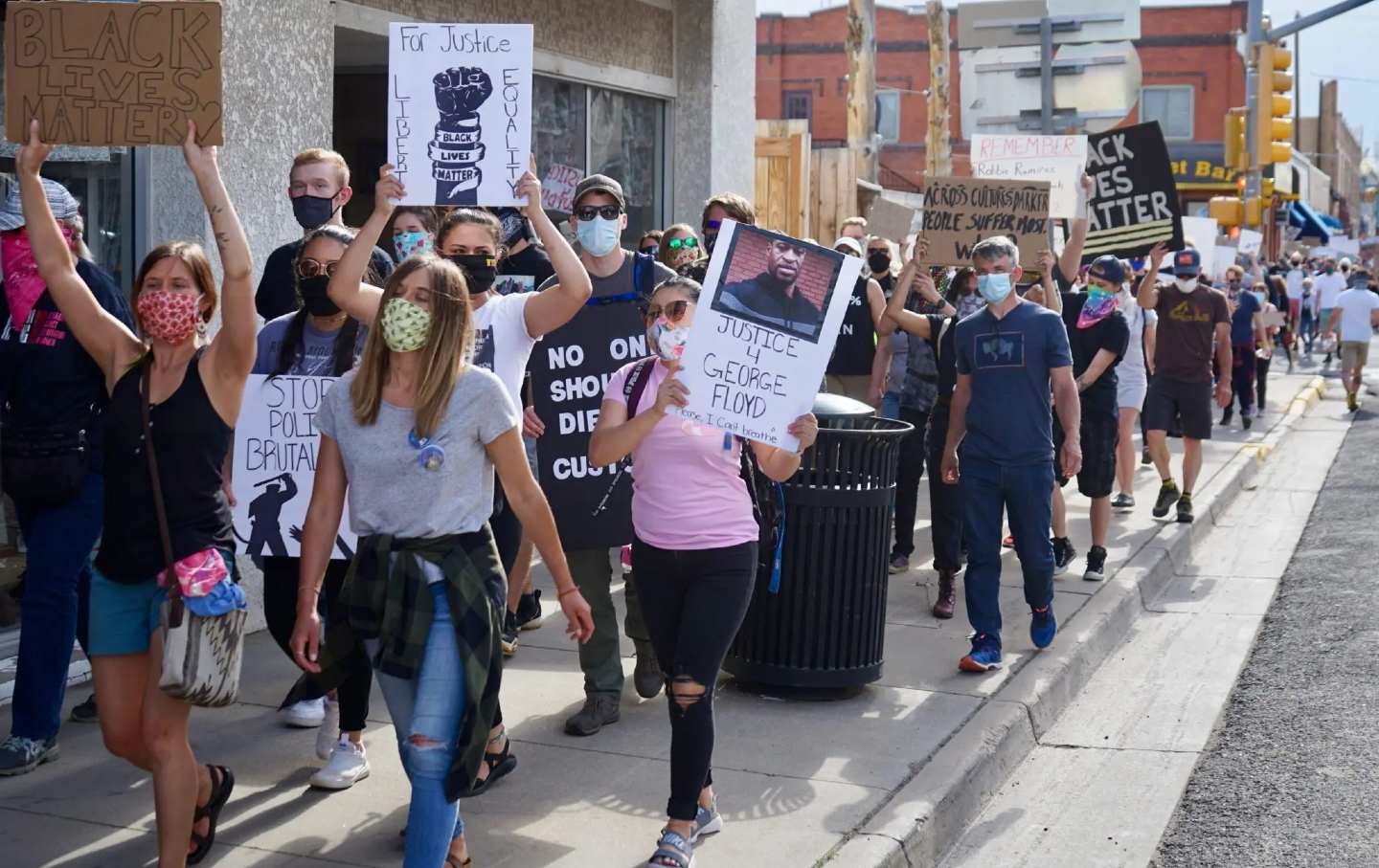 But the last few weeks in Laramie have been like nothing Vogel could have imagined. In early June, she and hundreds of others protested for 10 days straight, filling the streets and blocking intersections in the small city, population 32,711. “We’ve never really seen an outpouring like this.… These marches have really crossed the usual demographic boundaries that have usually stifled these sort of movements in Laramie,” said Vogel. “The diversity of these demonstrations across race, across age, across socioeconomic status, it’s mind-blowing and I’m still every day shocked to feel and see and know that people in this tiny town care.”