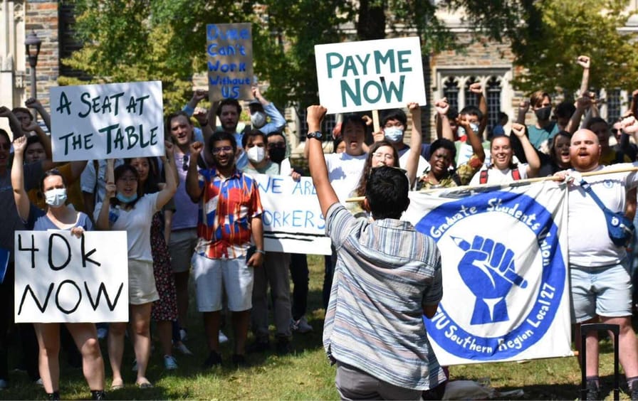 While we are among more than 45,000 graduate workers who have begun unionizing in this academic year, our union campaign is unique: We are proud to be worker-led, with no full-time staff. The administration has shown that without a contract, no promise they make to Duke workers is binding. Its efforts to undermine our movement—at the expense of their community and graduate students nationally—affirms that an employer-recognized union is more important than ever in order to reign in a seemingly unscrupulous administration. In other words, Duke’s best-resourced efforts will backfire and further cement our win.