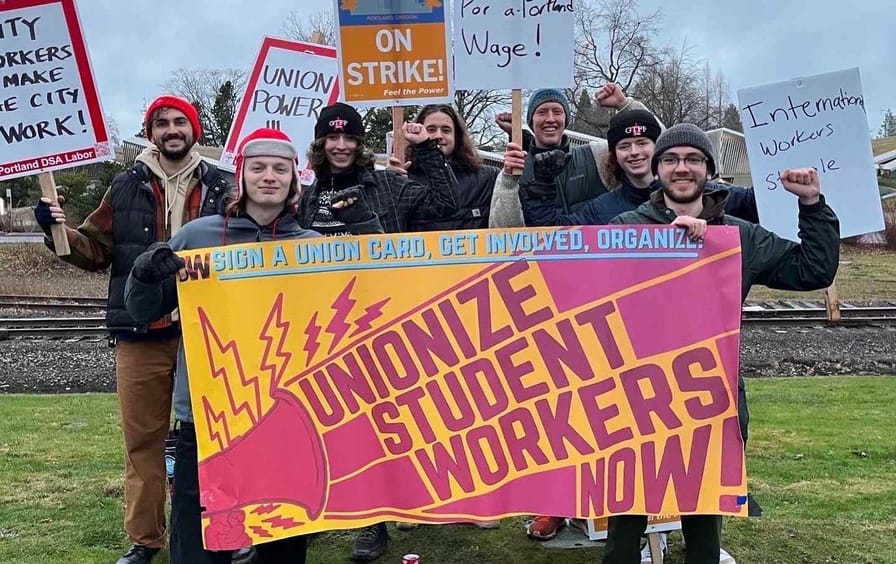 The organizers behind the union campaign, all student volunteers, hope to succeed under a unique Oregon law that allows a new bargaining unit of public employees to be certified not by election but by card check. In a card-check process, a union is certified under the Employment Relations Board if the majority of workers sign cards saying they want a union. Under this strategy, they need 50 percent plus one of student workers to sign a card affirming the creation of a union. Noah Thompson, an organizer and labor secretary in the student government, says the card check goal is achievable by April 1—180 days after the first card was signed. “We are getting 100 cards signed every week, and if we continue at this rate we will absolutely win,” said Thompson. “What winning a labor union does is give us a seat at the table. It legally requires the university to bargain over things like wages and working conditions. And if we fight really hard, we can bargain over stuff like health care and tuition assistance.”