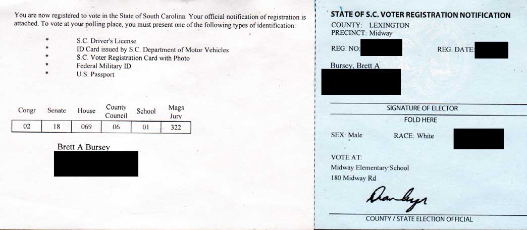 South Carolina’s new voter registration cards say you need one of five forms of photo ID to cast a ballot.