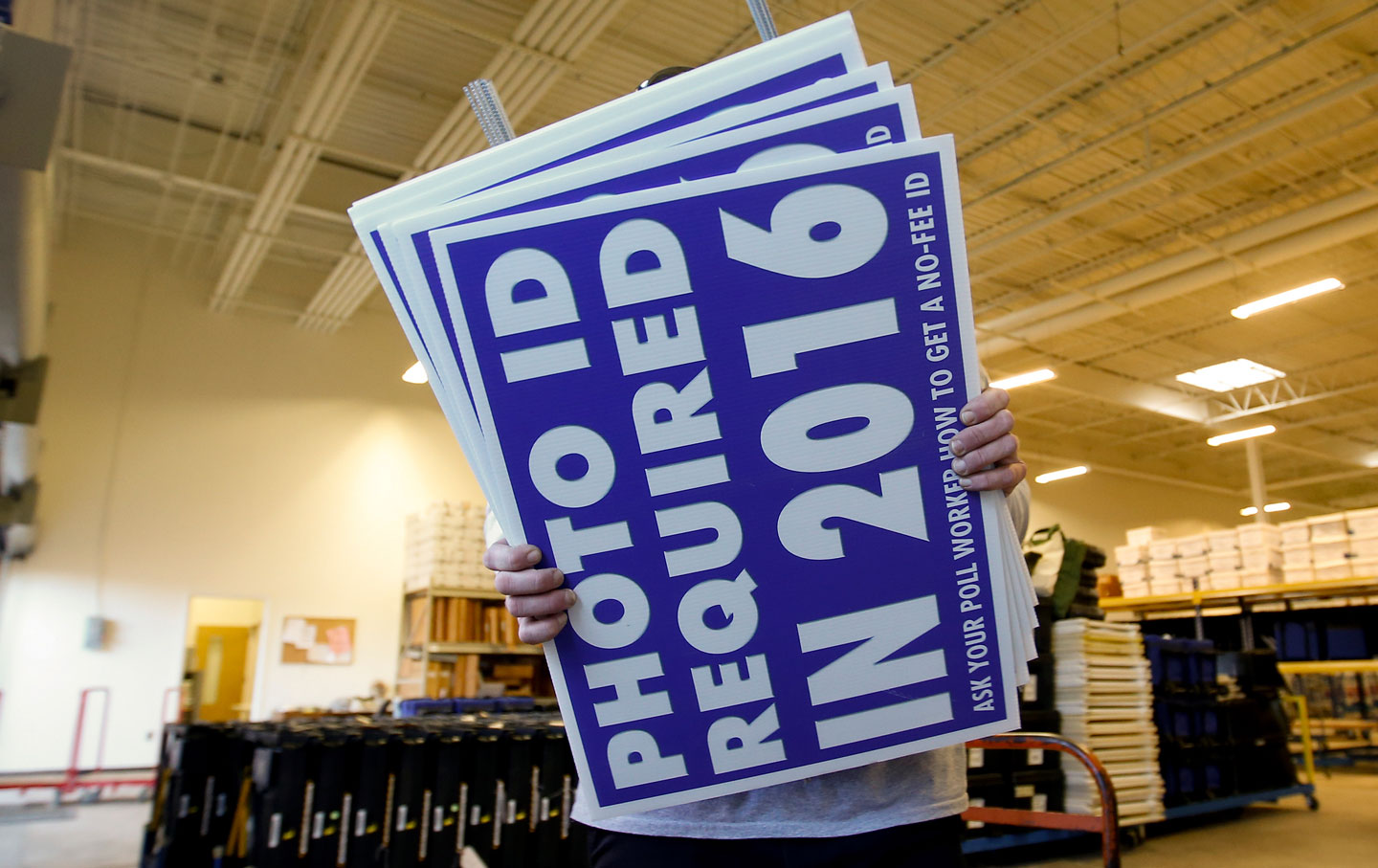 As MSNBC’s Zach Roth noted, posters distributed throughout the state say: “Photo ID Requirements Now In Effect: Voters will be asked to show one of these photo IDs before voting in person.” Only in much smaller text below that—and even there, not until the third paragraph—do voters learn that they can vote without ID.