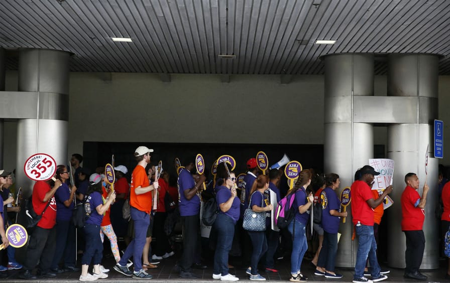 At Miami International Airport, Carlos Caballero an airport restaurant worker with UNITE HERE, talked about how workers struggling to feed their families were reaching a breaking point.