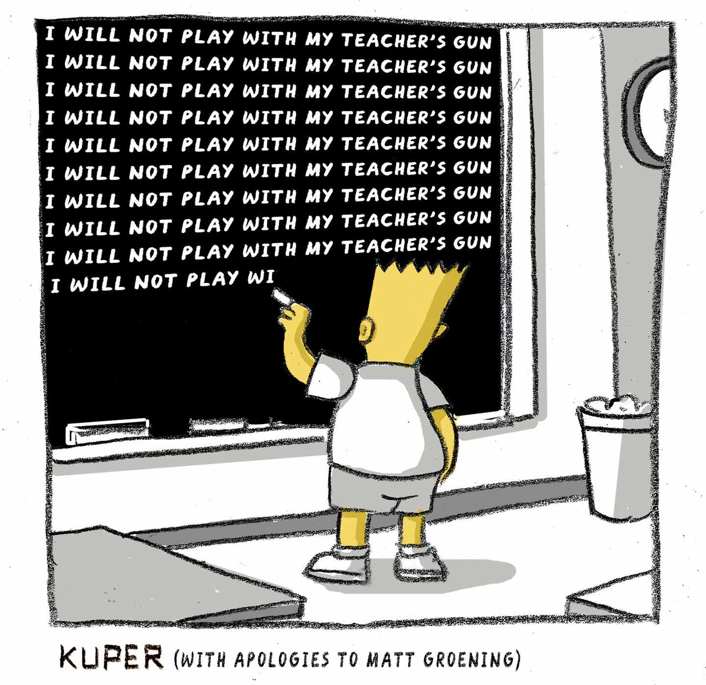 OppArtMarch 21, 2018Arm Teachers?Arm Teachers?Lawmakers’ answer to school shootings? More guns! On March 24, Americans around the country march for change. Peter Kuper Share Copy Link Facebook X (Twitter) Bluesky Pocket Email March 21, 2018 Check out all installments in the OppArt series.