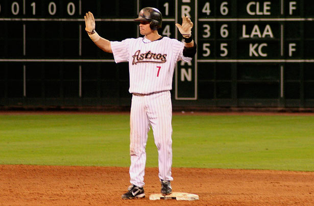 Craig Biggio salutes the crowd after one of his 668 career doubles, fifth all-time. This week, Biggio missed out on being the first Houston Astro in the Baseball Hall of Fame. (Flickr/Ed Schipul)