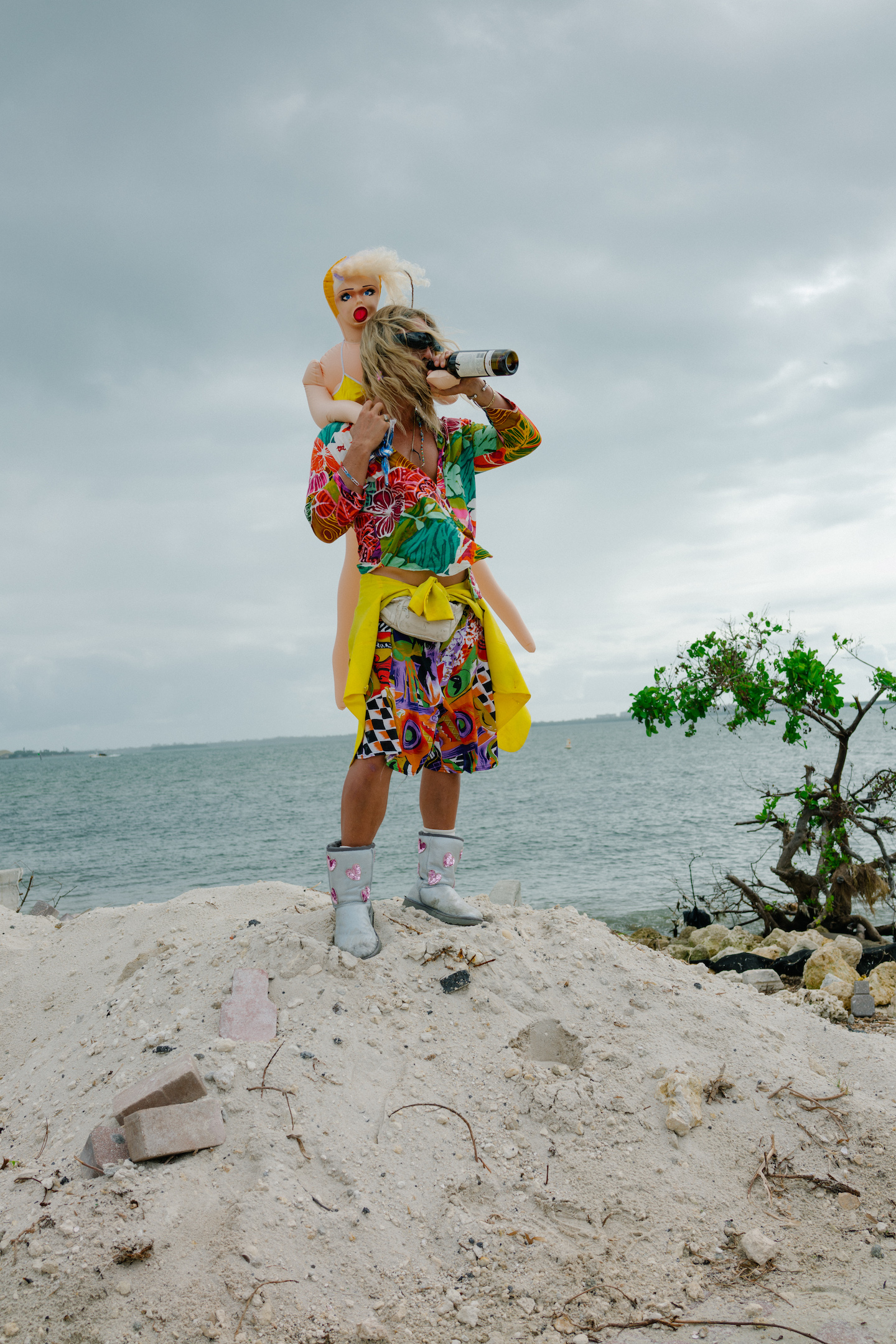 In effect, Korine has made a film about baby boomers—their tiny, overlooked libertine wing, but boomers nonetheless. Its protagonist is a lethally irresponsible late-middle-age Buffett fan who has no idea where his money comes from, doesn’t particularly care, just knows that it’s there, waiting for him to need it, like a bottle of Quaaludes stashed in a glove compartment. At the start of the film, when Moondog boats to Miami for his daughter’s wedding, he gapes at his waterfront mansion: “I forgot how rich we were,” he shouts to Minnie, waiting on the pier in a slinky black bodysuit holding a mimosa and a PBR tallboy. Earlier, on the phone, he tells her he belongs in the Keys, “with all the burnouts, sweetie. I’m a bottom-feeder.” But he fits in Miami too, smoking top-shelf cannabis on yachts and golf courses with his agent.