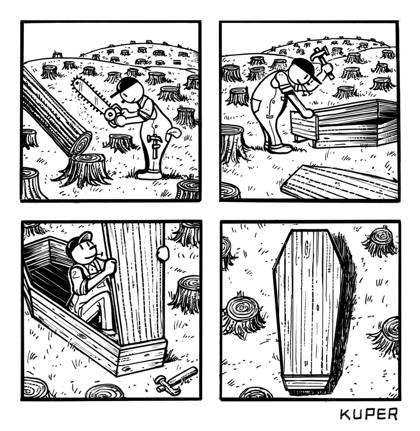 OppArtFebruary 6, 2018Boxed InBoxed InAs deforestation continues, we build our future. Peter Kuper Share Copy Link Facebook X (Twitter) Bluesky Pocket Email February 6, 2018 Check out all installments in the OppArt series.