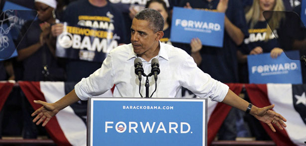 Barack Obama campaigns in 2012. (AP Photo/Tony Dejak.)