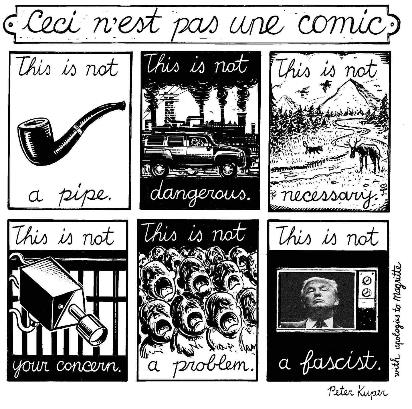 February 2, 2017This Is Not a ComicThis Is Not a ComicWho are you going to believe? Peter Kuper Share Copy Link Facebook X (Twitter) Bluesky Pocket Email February 2, 2017 ignore this