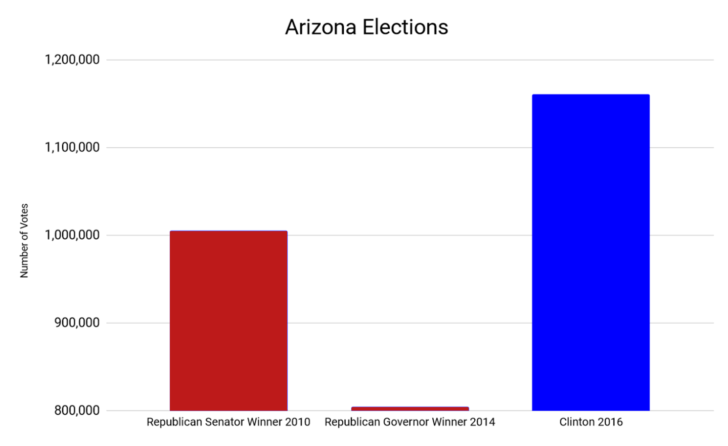 To prevail in Arizona and other states, it is critical to resist the siren song of an outdated strategy that pushes candidates to moderate their politics in an effort to woo voters. While the greatest upside for all Democrats in Arizona this year is the chance to vastly expand the number of Latinos turning out to vote, the 2018 ticket could actually win just by mobilizing a high percentage of those Democrats who voted against Trump in 2016. Clinton earned 1.1 million votes, more than the number of votes received by the Republican nominee in every statewide race over the past decade.