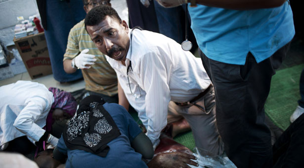 “I was shocked by the level of violence,” says Ali Sabry, a 32-year-old Morsi supporter from Benha, a Nile Delta city north of Cairo. His clothes are covered in dirt and blood. “Lots of my colleagues died in front of me. I carried at least three or four martyrs, all of them were shot, one was hit in the throat, another in the forehead.”
