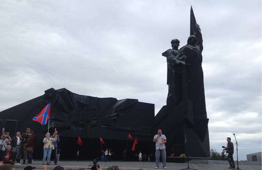 That was the message at a rally for Donbass Liberation Day, the celebration commemorating Soviet forces’ victory over German troops in the region in 1943. Speaking in the shadow of a 100-foot tall monument featuring a Red Army soldier and a coal miner, Alexander Zakharchenko, prime minister of the self-declared Donetsk People’s Republic, promised to repulse Ukrainian government forces, which he called the “same kind of invaders” as the Nazis, from the region.