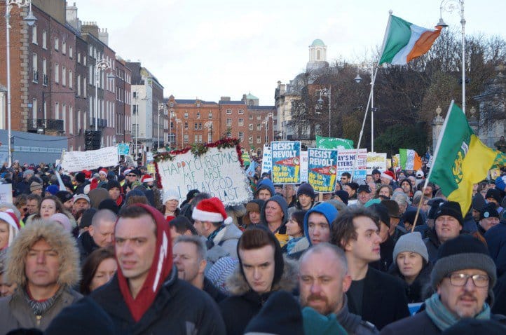 One new poll has both government parties at their lowest ratings in a decade, with Fine Gael at 21 percent and its partner the Labour Party running at just 6 percent. An Irish Sunday Independent survey found that “less than two in five householders” have said they will eventually pay the revised fees. The protests, meanwhile, will go on.