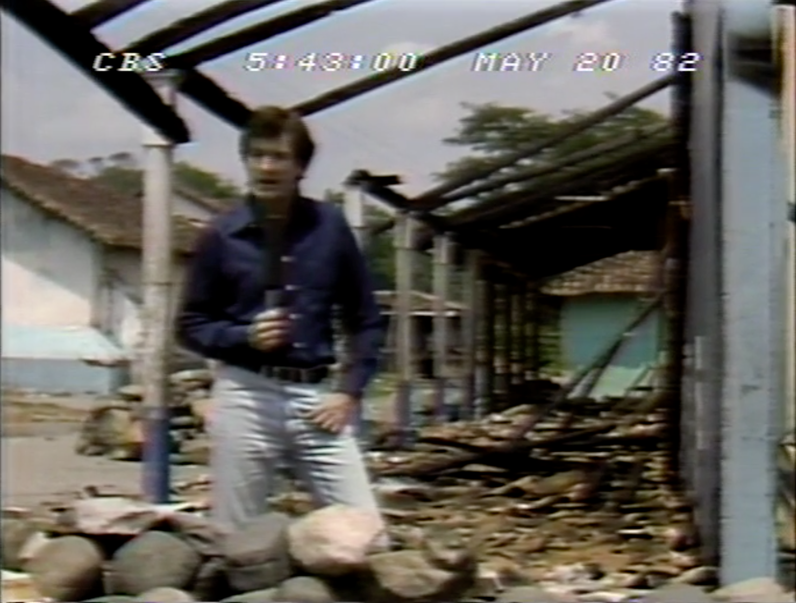 He continues to emphasize his courage (writing that a Salvadoran military official said that he had “cojones” for having travelled to Meanguera). Then, having made it back to San Salvador safely, he filed his story: “I explained that while a scorched-earth policy was clearly in effect in remote village—the evidence was right there on tape—it was impossible to say just who was doing the scorching. Could be the muchachos [that is, the guerrillas], could be the government. The ninety-second package contained great video and a fairly impressive ‘on the scene in a very bad place’ stand-up by yours truly.”