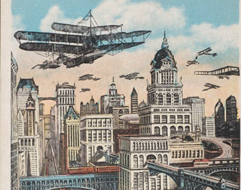 Factories belching smoke. Hideous resort hotels. Strangely shaped lighthouses. An image of the Holland Tunnel with oddly static-looking cars, plastic-looking drivers and passengers. An image of the Detroit-Windsor Tunnel with no cars at all; it’s just the inside of a tunnel.