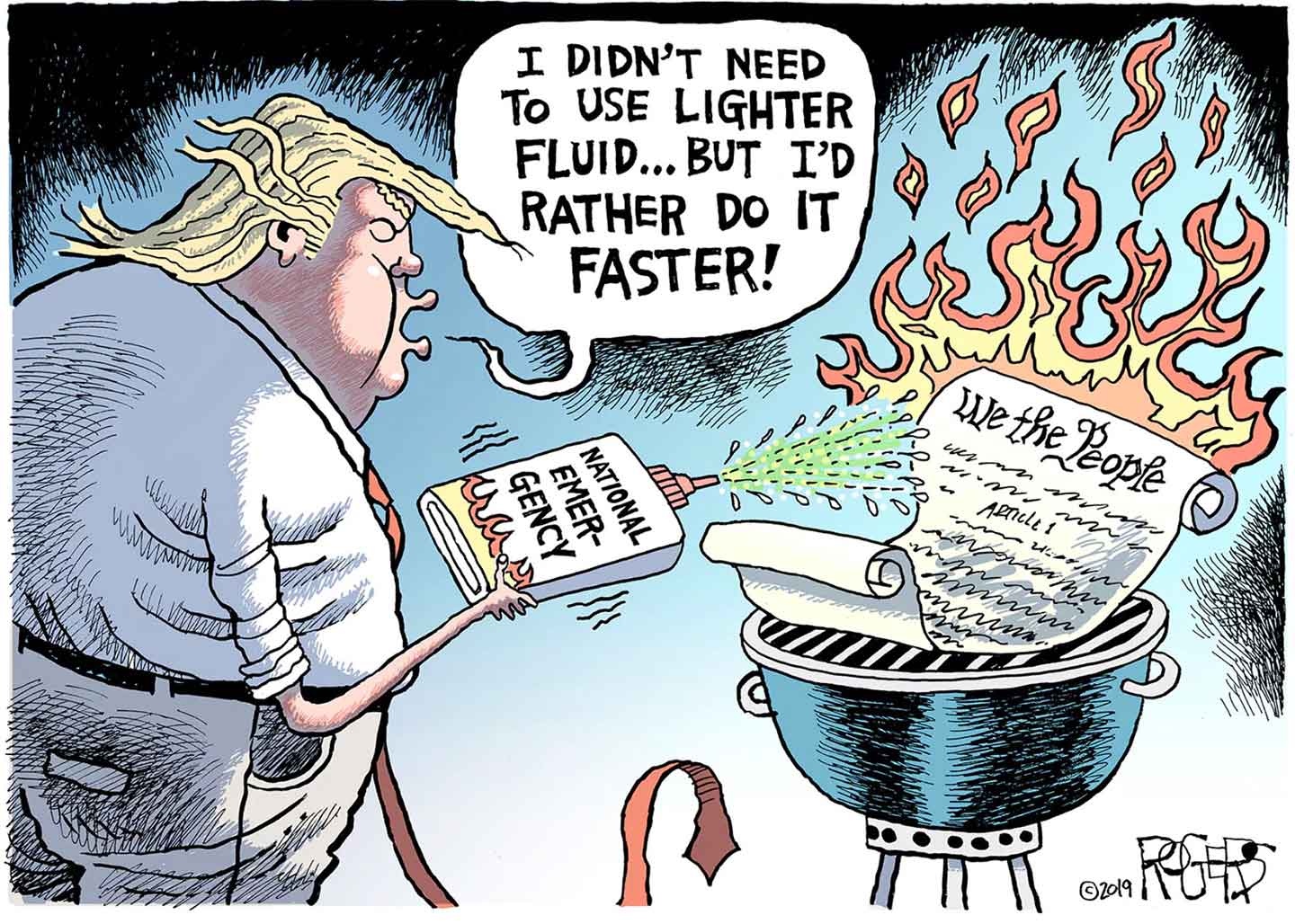 PoliticsOppArtFebruary 26, 2019FasterFasterMaking the Constitution great again. Rob Rogers Share Copy Link Facebook X (Twitter) Bluesky Pocket Email February 26, 2019 Check out all installments in the OppArt series. Keep Reading Ad Policy