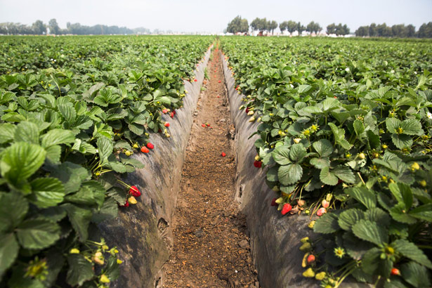 If the concentrated use of pesticides near predominantly Latino communities seems unfair, some have argued that it’s also illegal. Parents of students at Rio Mesa High School first raised that question sixteen years ago, after the Environmental Working Group, a research and advocacy organization, reported in 1998 that thousands of pounds of the fumigant methyl bromide were routinely applied within close range of California schools. Methyl bromide, a potent neurotoxic agent that can cause involuntary twitching, neurodegeneration and even death, is applied to fields before planting to wipe out pests and soil diseases and for decades was strawberry growers’ preferred fumigant. In the EWG study, Rio Mesa, with 2,169 students at the time, ranked second statewide when it came to methyl bromide use within a mile and a half of a school. The top-ranked position was held by an elementary school in Oxnard.