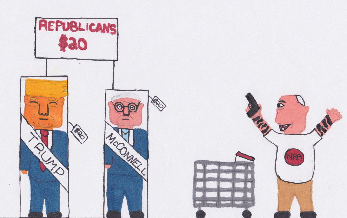 PoliticsOppArtJuly 16, 2018FIRE SALE!FIRE SALE!The NRA purchases candidates and we pay the price. Nate Share Copy Link Facebook X (Twitter) Bluesky Pocket Email July 16, 2018 Check out all installments in the OppArt series.