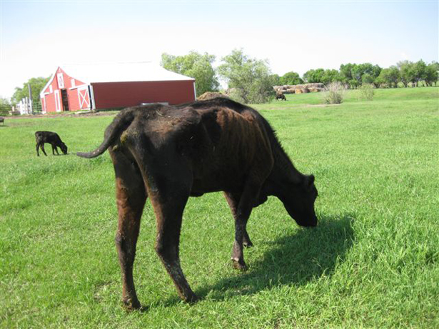 Schilke ranch cow that has lost its tail, one of many ailments found in cattle following hydrofracturing of the Bakken Shale in North Dakota