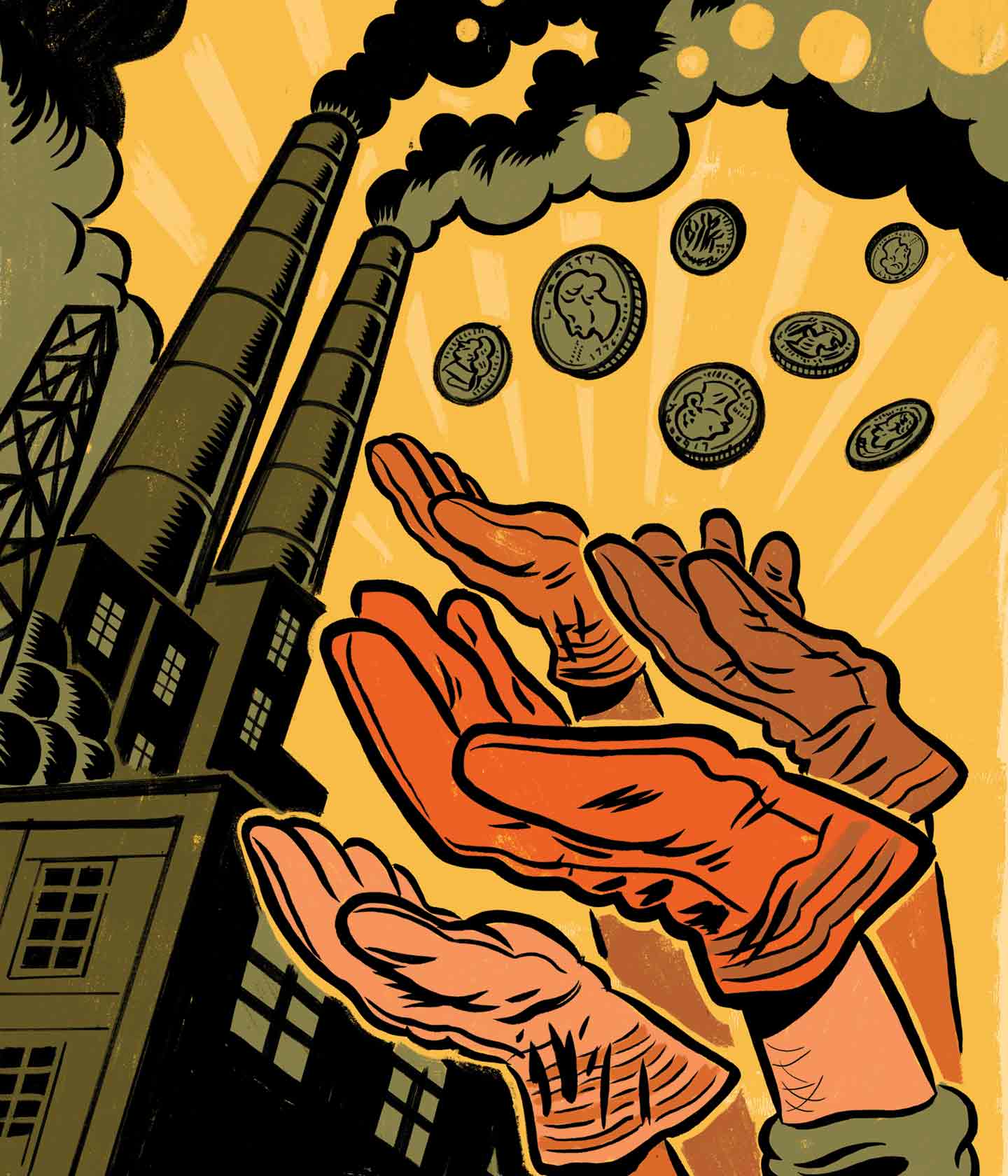 Supported by an economic analysis from a team led by Robert Pollin, of the University of Massachusetts–based Political Economy Research Institute, they crafted a ballot measure that would commit the state to massive reductions in CO2 emissions: 20 million tons per year, which, by 2035, would be 40 percent lower than they were in 2014. The plan would impose a carbon-emissions fee on big polluters—and it would use the resulting billions of dollars in revenue for a rolling series of investments in clean energy and water. The money would be directed to employers with a high-wage, labor-protection model, to be spent on the economic, environmental, and health-care revitalization of communities on the front lines of global warming; on low-income energy-assistance programs; and on both job retraining and wage and benefit protections for workers in fossil-fuel-reliant industries as those industries are phased out over the span of a generation.