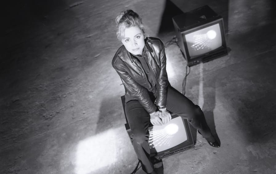 When the artist Gretchen Bender was born in 1951, there were only four television networks in the United States. All of them stopped broadcasting by midnight, filling sets across the country with dead air and static. When she died in 2004, Americans had access to hundreds of channels, most running 24 hours a day. Her art, showcased in her first posthumous retrospective, “Gretchen Bender: So Much Deathless,” registers the shock waves of this transformation and does so with a healthy dose of skepticism. Her multichannel installations from the 1980s and ’90s, the focus of the exhibition, feature rows and stacks of bright and raucous TV monitors. Unapologetic migraine inducers, they cycle live and recorded footage in often jarring sequences. TV for Bender is hostile and unrelenting, impossible to escape or ignore—not an accessible well of information or entertainment, but a portal leading to states of heightened confusion and exhaustion.