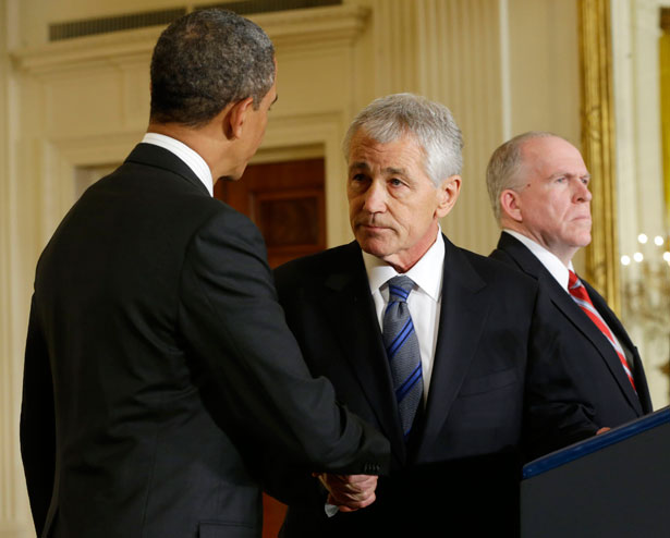 "In Chuck Hagel our troops see a decorated combat veteran of character and strength — they see him as one of their own," President Obama said as he nominated the former Republican senator from Nebraska to become the first former enlisted service member and first Vietnam veteran to serve as secretary of defense. He went on to call him “the leader that our troops deserve.”