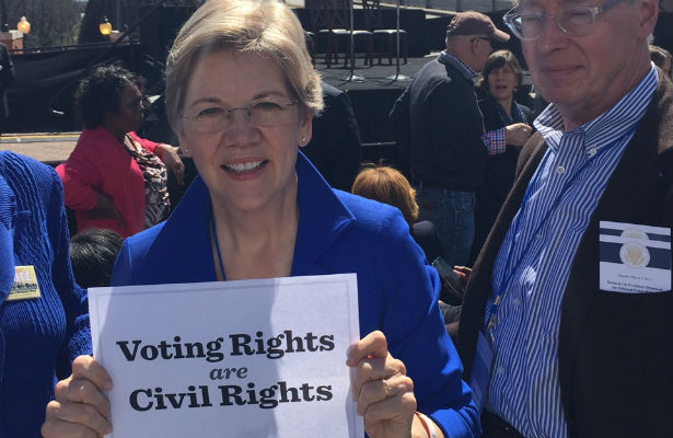 “This is a moment of hope, a reminder that people can make change,” said Senator Elizabeth Warren (D-MA), after her first visit to Selma. “But it’s also a moment of shame, because fifty years after Selma the Voting Rights Act has been gutted and this Congress will not even bring itself to vote on a stronger law.”