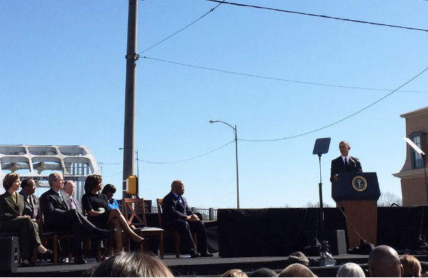 President Obama speaks at the Edmund Pettus Bridge in Selma.