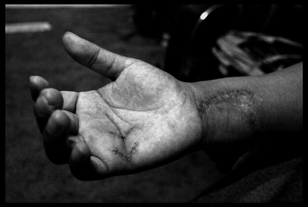 Abel Cervantes, a worker at the Smithfield pork plant in Tar Heel, was cut by a knife at work. At 20 years old, he can no longer use his hand or work.