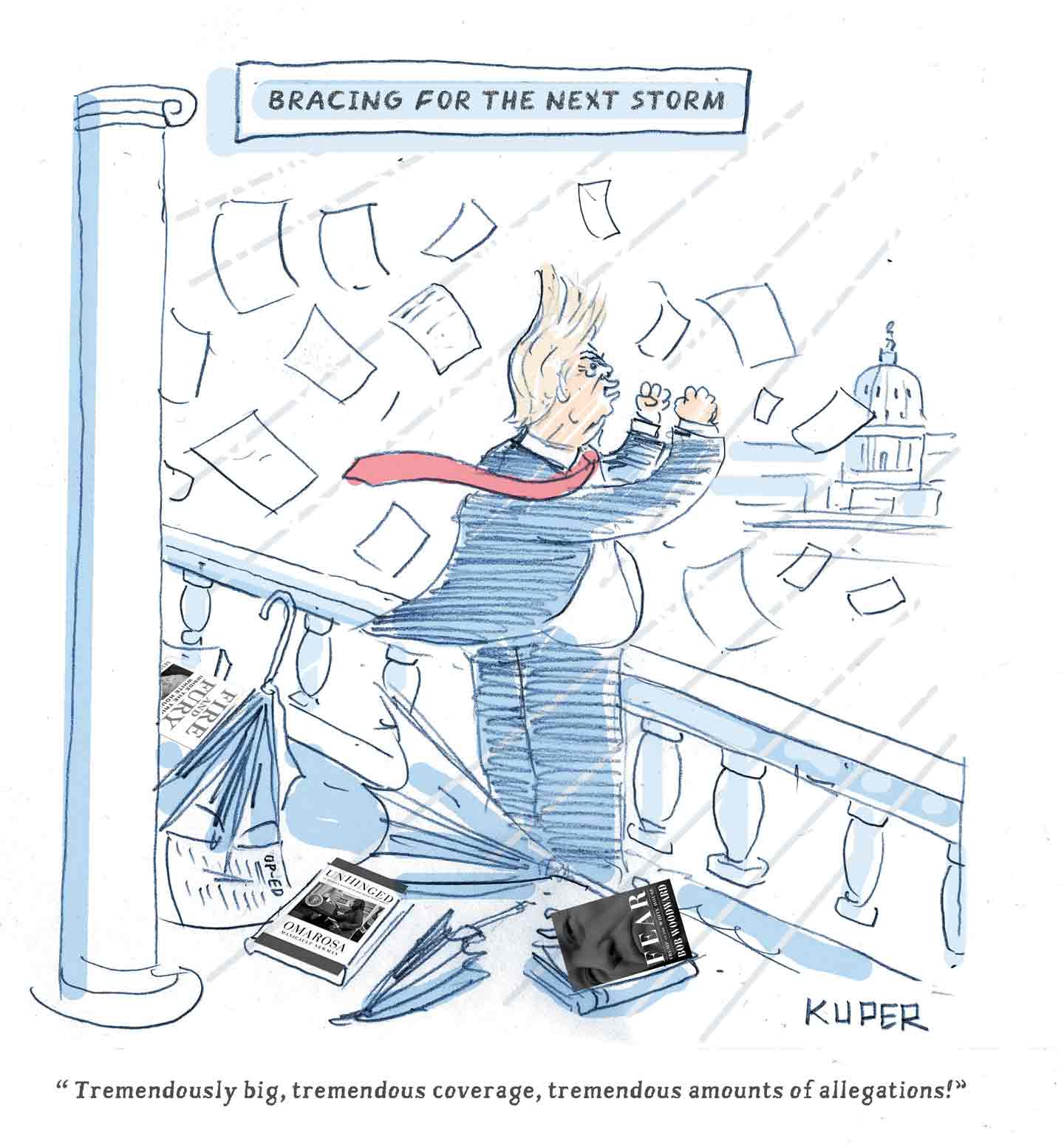 PoliticsOppArtSeptember 13, 2018Hurricane DonaldHurricane DonaldTrump gave himself an A+ on the Puerto Rico disaster. What will he give himself on impeachment? Peter Kuper Share Copy Link Facebook X (Twitter) Bluesky Pocket Email September 13, 2018 Check out all installments in the OppArt series.