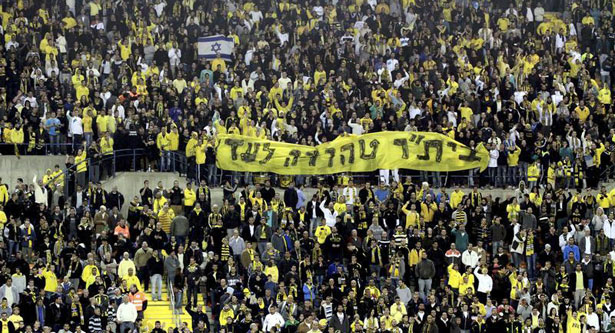 Supporters of Beitar Jerusalem hold a banner reading “Beitar will always remain pure.” (Reuters/Stringer)