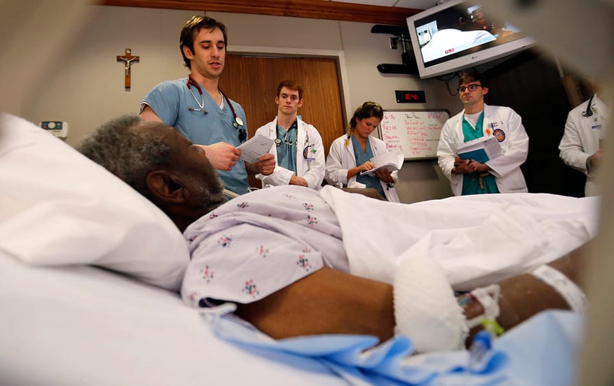 Once “in house,” residents can expect to work 80 to 90 hours a week, for a fraction of what attending physicians make. By the hour, that can add up to less than minimum wage. They operate at the bottom of the rigid medical hierarchy, subject professionally and personally to the whims of their superiors, all the while confronting extreme trauma and tragedy on a daily basis. There are no guaranteed breaks or meals, and little recourse for wrongs committed against them. One study found that over half of residents report crashing or nearly crashing their cars because they were profoundly fatigued.