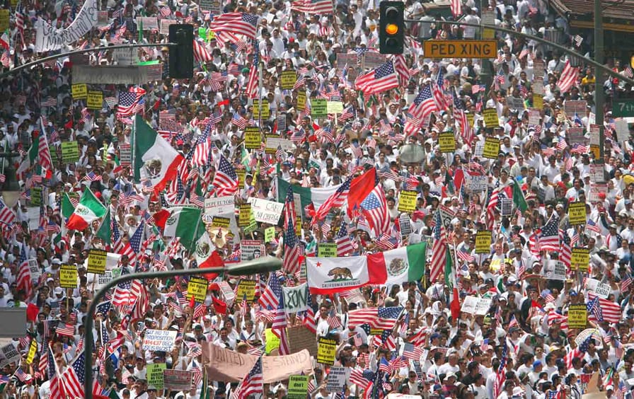Almost a dozen years later, Arreola can still tick off the dates of those early mobilizations: March 10, March 25, April 10. At the April march, Arreola recalls, some 100 cities took part around the country. In May, marches against Sensenbrenner and against criminalization took place in more than 200 cities. That year, hundreds of thousands of immigrant families filled the streets wearing white T-shirts and waving Mexican and American flags alongside each other.