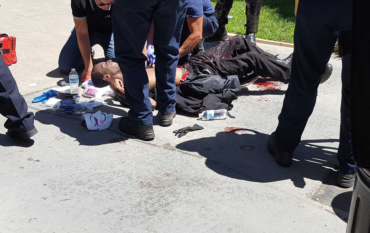 Every time the crowd spotted a skinhead or other white nationalist trying to move toward the steps, they surged forward, north, south, east, west, chasing down and beating the skinhead. But the Nazis had also come armed and prepared. Wielding knives and sticks, they hurled themselves into the enraged crowd. A 46-year-old anti-Nazi, Yvette Felarea, was wounded, her left arm and head streaming with blood. As she was being attended by fellow demonstrators, she was defiant and somewhat jubilant. “Let them know they got worse,” she said of the Nazis, who had been run off somewhere to the south of the capitol. “I’m proud we made this happen. And I’d do it again. The Nazis were scared, and they needed to be. They stabbed someone.”