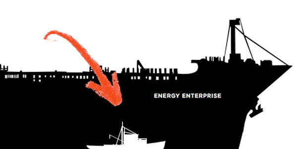 Ken called the Somerset police and said they were there to carry out a peaceful protest. Sometime before 11 am, the Energy Enterprise came into view, followed close by multiple high-speed Coast Guard boats. As the freighter bore down on Ken and Jay, the ship’s captain made radio contact, ascertained their intentions, and advised them and the Coast Guard that he had ordered “defensive measures” on deck and was prepared to “protect” his crew. Meanwhile, from somewhere above them on the pier, Ken and Jay heard the distinctive chck-chck of a rifle, chambered and ready. When the freighter finally came to a stop, its prow loomed over the lobster boat. Coast Guard personnel boarded the Henry David T. and calmly took control of the situation.