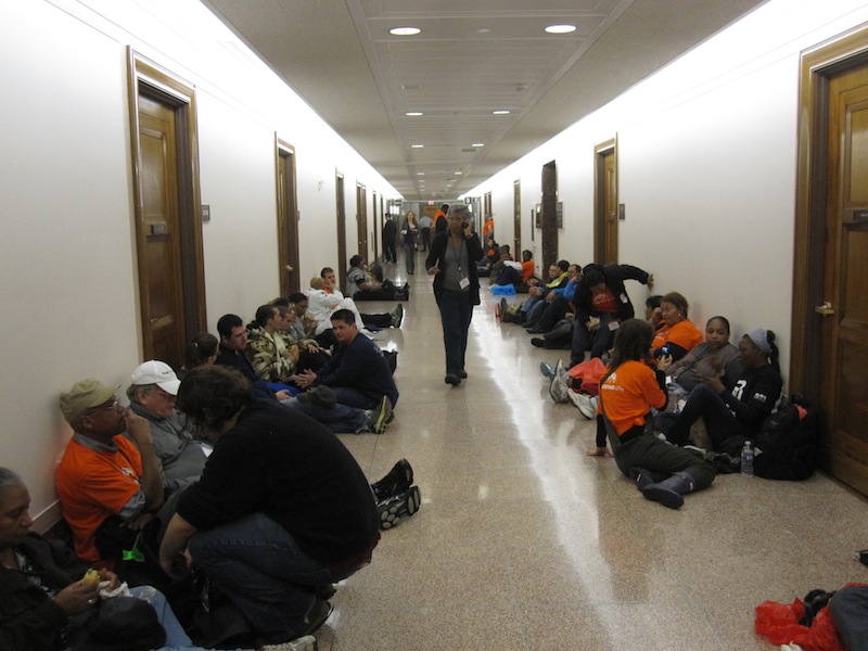 “Take Back the Capitol” protesters wait outside Sen. Scott Brown’s office in the Dirksen Senate Office Building on December 6, 2001. Photo credit: Massuniting