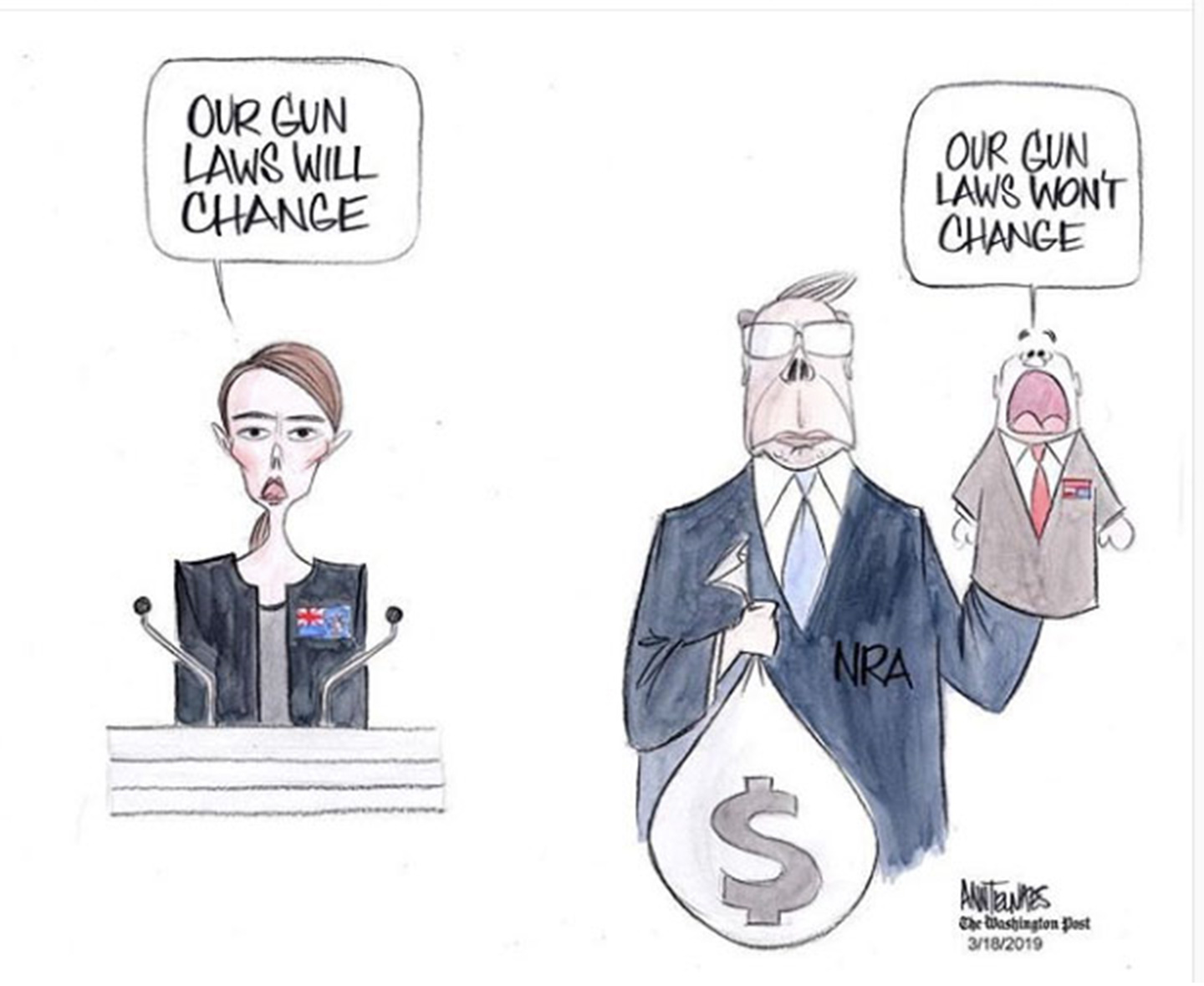 OppArtMarch 25, 2019Our Gun Laws Will ChangeOur Gun Laws Will ChangeNo NRA in New Zealand. Notice? Ann Telnaes and Andrea Arroyo Share Copy Link Facebook X (Twitter) Bluesky Pocket Email March 25, 2019 Check out all installments in the OppArt series.