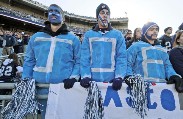 Penn State students watch during their 17-14 loss to Nebraska in an NCAA college football game Saturday, Nov. 12, 2011. (AP Photo/Gene J. Puskar)