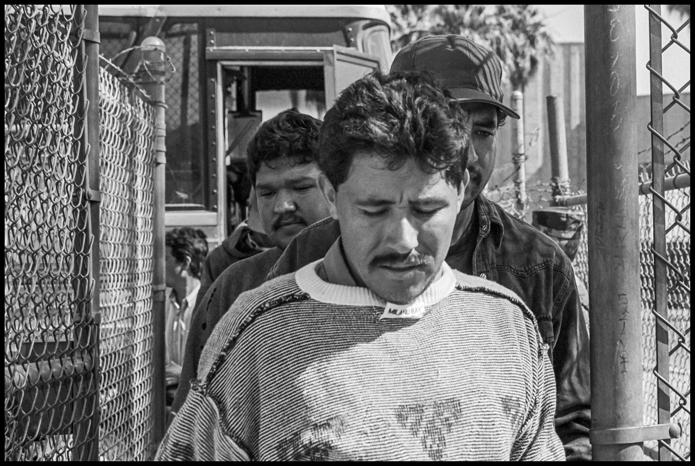 I saw my first immigration raid long before I became a photographer. I was an organizer for the United Farm Workers in the Coachella Valley. One morning, I drove out to a grove of date palms to talk with the palmeros working high in the trees. As I pulled my old white Valiant (the only kind of car the union had) down a row between the palms, I saw a green Border Patrol van. The workers I’d talked with the night before in the union hall were all staring at the ground, handcuffed behind their backs.