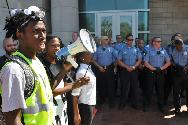 Clayton, Missouri—Police arrested two protesters on Tuesday during a demonstration outside a government building, adding to a growing list of civil disobedience arrests related to the shooting death of Michael Brown, an unarmed black teenager, by a police officer earlier this month.