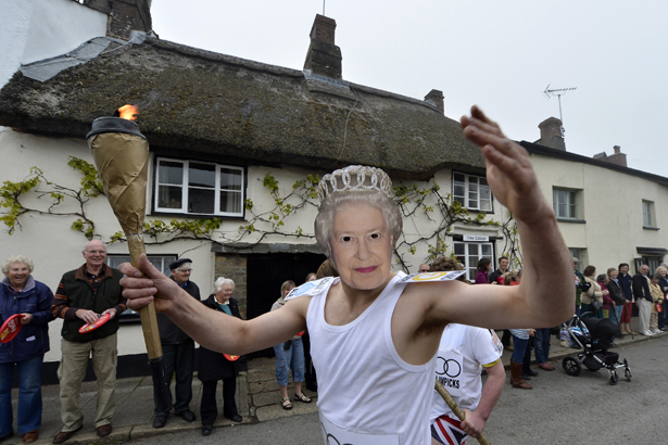 Crowds line the streets as a locally organized torch relay race is run ahead of the Olympic Torch Relay in Hatherleigh in south west England May 21, 2012. Some 8000 runners are participating in the Olympic Torch Relay which will cover over 8000 miles throughout Britain, Northern Ireland and Ireland over the next ten weeks before the London 2012 Olympics. Reuters/Toby Melville