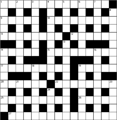 ACROSS 1, 13 & 23 triple anag. 6 N + ARC 9 A(B)IDE 10 W + ATERG (rev.) + ATE 12 anag. 15 MASS + MEDIA (aimed anag.) 17 “rime” (&lit.) 19 anag. 21 LAND + S + CAPE 25 “fee, gee” 27 MELODR + AMA (remold anag.) 28 IN + D(I)E 29 N + A + D.A. 30 FAT + HOM[e]LESS