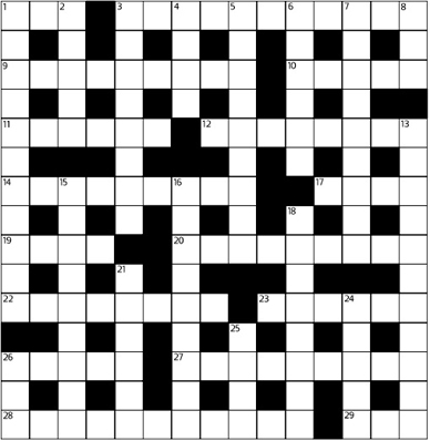 ACROSS 1 AB(BEY)ROAD 6 PRO(U)D 9 T + OOLS (anag.) 10 anag. (&lit.) 11 SPIN A L(T)AP 13 SAG A (rev.) 14 PRO + DIG + IOUS 18 AS + PERS(I)ONS 19 PLU[g]S 22 “rite” 24 hidden 26 [rere]CROS (rev.) + SWORD 27 [b]EATEN 28 TUNI[c]S 29 throw anag.