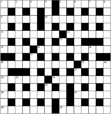 DOWN 1 anag. 2 DES(KT)OP (posed rev.) 3 WAR + DEN 5 S(NOWD)AY (down anag.) 6 E(CLIP)TIC (cite rev.) 7 DEN(YIN)G 8 2 defs. 9 hidden 16 2 defs. 17 pun 18 MIL(LION)S (slim rev.) 20 [l/S]-ATCHE-[s/L] 21 anag. 22 anag. 24 T + ELLA + LL 25 T(RUM)AN 26 MUS + I + C