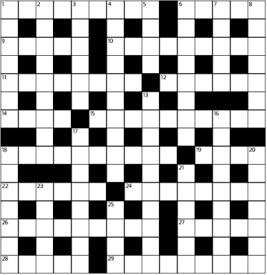 DOWN 1 “chorale” 2 TAN + ZAN + IAN 3 E(P)IC (ice anag.) 4 BE(G + INN)ERS 5 MO + VIE 6 ALL + ITERATE 7 S + TALE 8 anag. 13 2 defs. 15 anag. 17 METABOLI (anag.) + C 18 anag. 21 hidden 23 hidden 24 RENE + W 26 THE + O