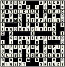 1 REDUC (anag.) + E 4 “a patchy” 10 PHY(SIC)IAN (any hip anag.) 11 MIMI + C 12 anag. 13 “stoop if I’d” 14 [r]INGO + OD’S + PIR(I)TS (trips anag.) 18 SHORT(TEMPE)RED 24 anag. 25 PUP + I + L 27 alternate letters 28 SO + MNO + LENT 29 DIG + [j]EST 30 anag.